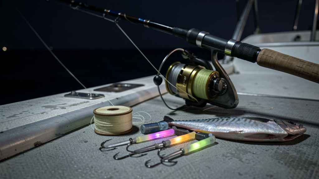 갈치 낚시는 주로 밤에 이루어지기 때문에 야간 낚시에 적합한 채비를 갖추는 것이 필수적입니다. 일반적으로 다음과 같은 준비물들이 필요해요.
